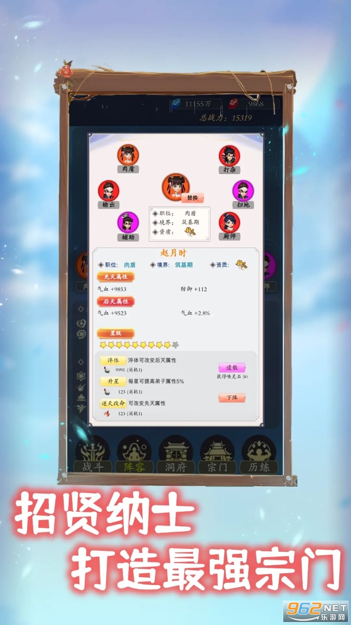 2、弟子培养:你可以培养弟子,提升他们的实力和技能。通过给予任务、修炼和战斗,让他们不断成长,成为宗门的中流砥柱。