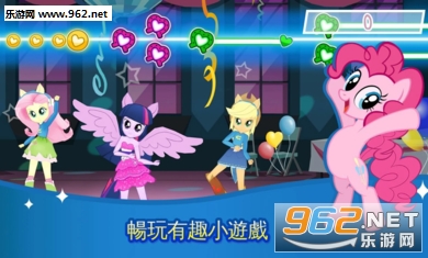 小游戏:与紫悦一起玩“弹弹球”,跟云宝玩“魔法之翼”,还可以和任何小马在“舞林争霸”中尬舞!