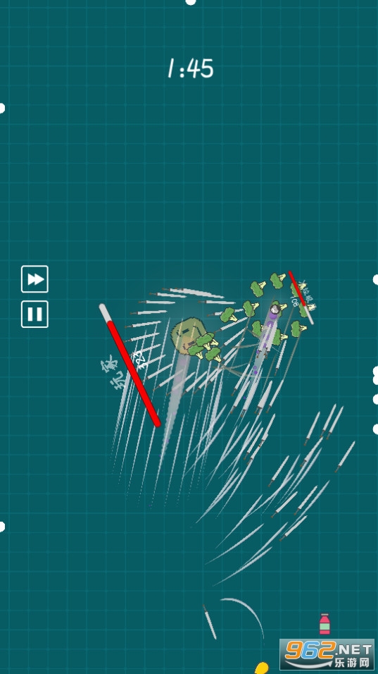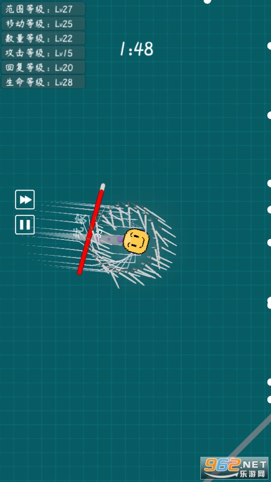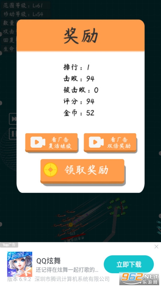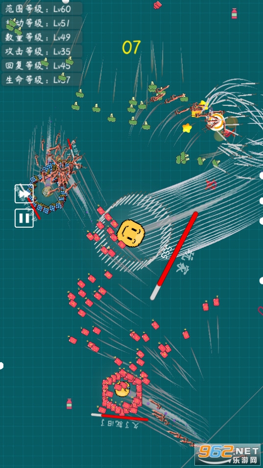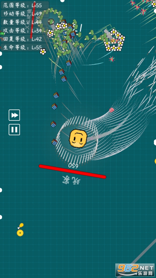 3.玩家滑动屏幕控制角色移动,收集各种属性道具,升级和增强自己