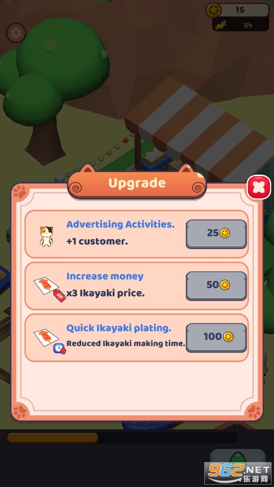 3、午夜寿司店,开在街头的角落,随着资金充足,玩家可以扩大寿司店。