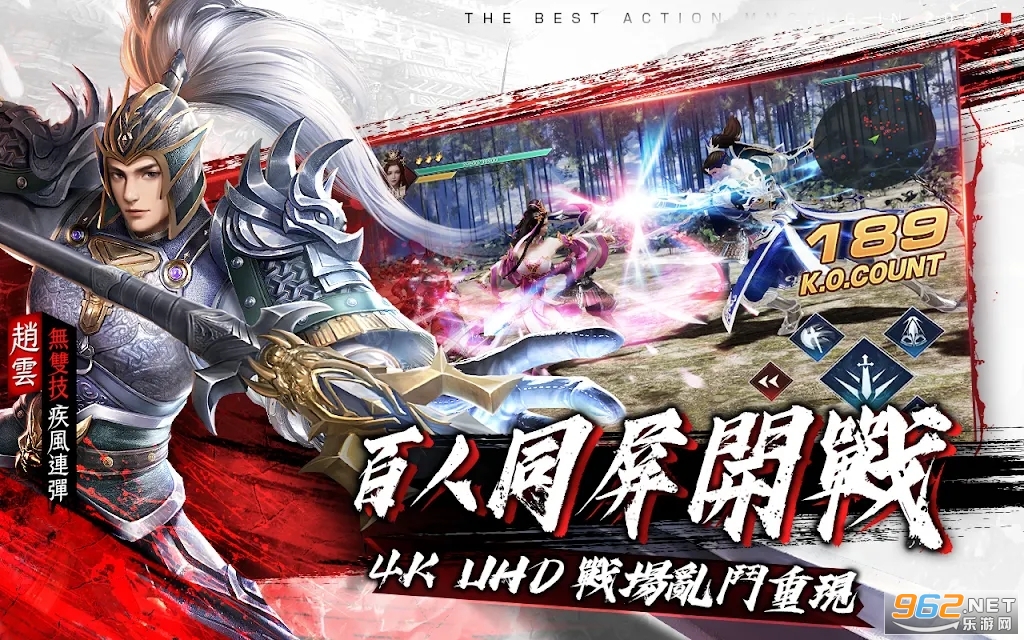 最强三国动作MMO,无双连击模式大招横扫千军,组合三国名将打造连携技,体会名将在手,可敌千军万马的快感!真实呈现真三国爽快刷兵割草,突破极限刷新你的战场纪录,这才是三国,COMBO连击狂暴战场!