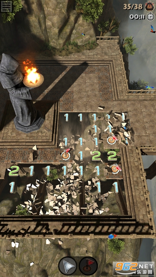 3、非常简单的游戏玩法,玩家只需看数字,计算出每行每列有多少炸弹,然后用旗子表明隐藏的炸弹方块