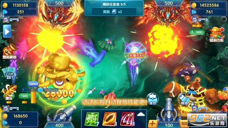 4人同台,真人竞技,超强炮倍,超高击杀力,超爽技能道具,超丰富模块玩法,经典街机捕鱼玩法的升级和创新!