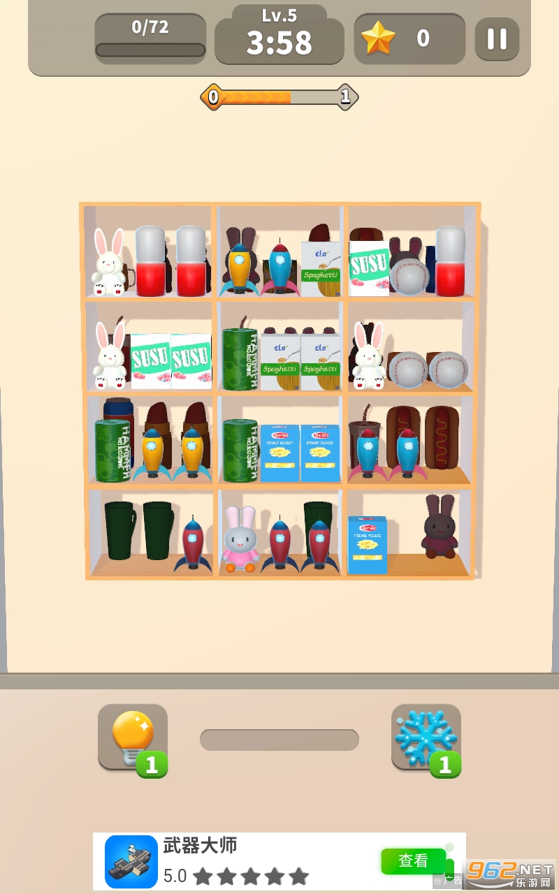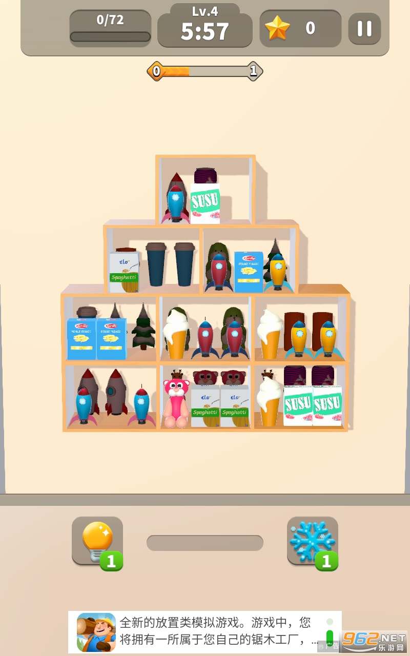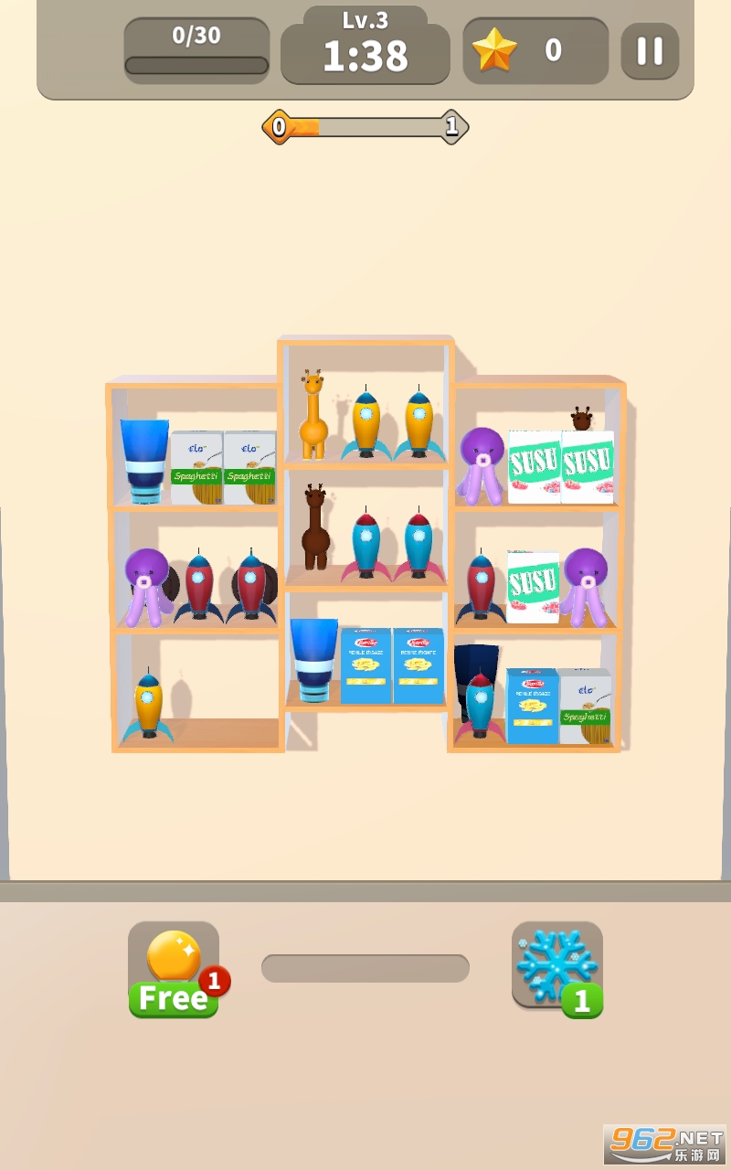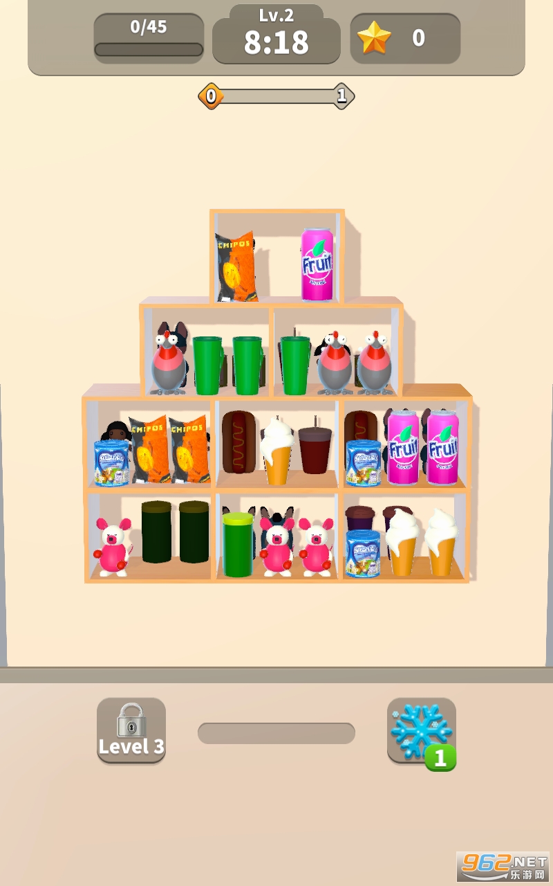 在这个游戏中,您可以对零食、饮料和水果进行分类,并在 3D 橱柜中探索三重匹配的乐趣,解锁更多您喜欢的产品。