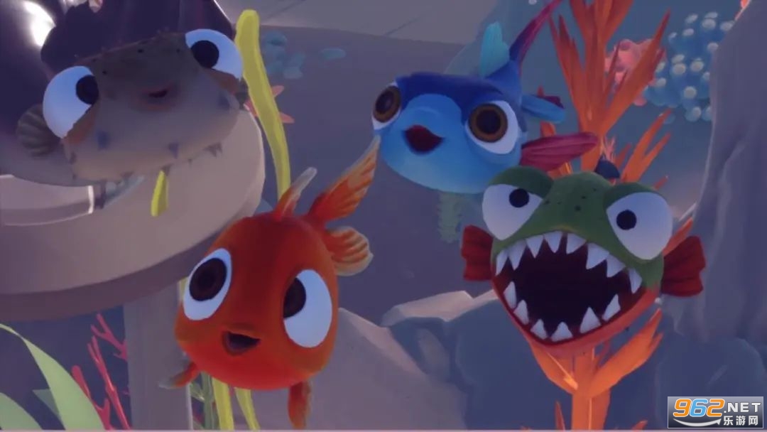 1、游戏的故事剧情非常简单、粗暴,讲述的是四条同在一个水族缸里的“小伙伴”分别被人买走,继而展开冒险重新回归大海与朋友相聚的故事。