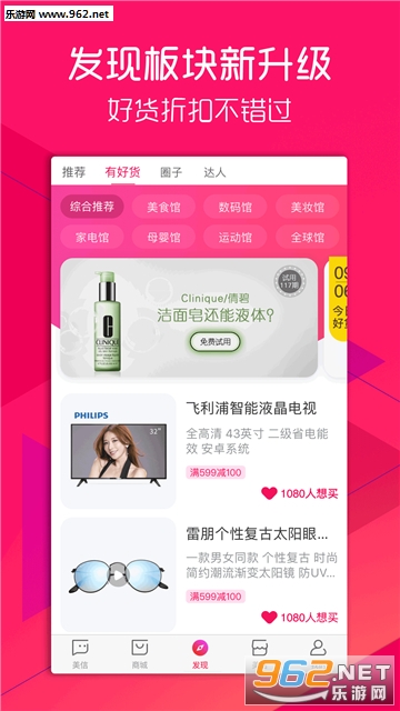 全新页面,推荐更贴近你喜好的潮流讯息;编辑严选达人推荐,每日为你甄选生活品质好货;更有视频精选频道,让你连绵不绝刷视频爽到爆!