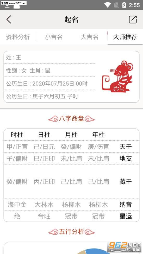 2.起名宝宝取名字综合生辰八字、五行喜用、三才五格、生肖喜忌、字形意义等,多角度分析起名。