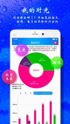 【我的时光】我的时光、今日时光,开始了解您每天、每周、每月或所有花在奋斗、荒废、睡眠的时间长度和百分比,以及具体的时间去向。