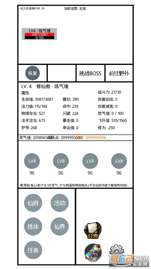 一款修仙文字游戏,没有华丽绚彩的界面,只有最朴实的玩法。