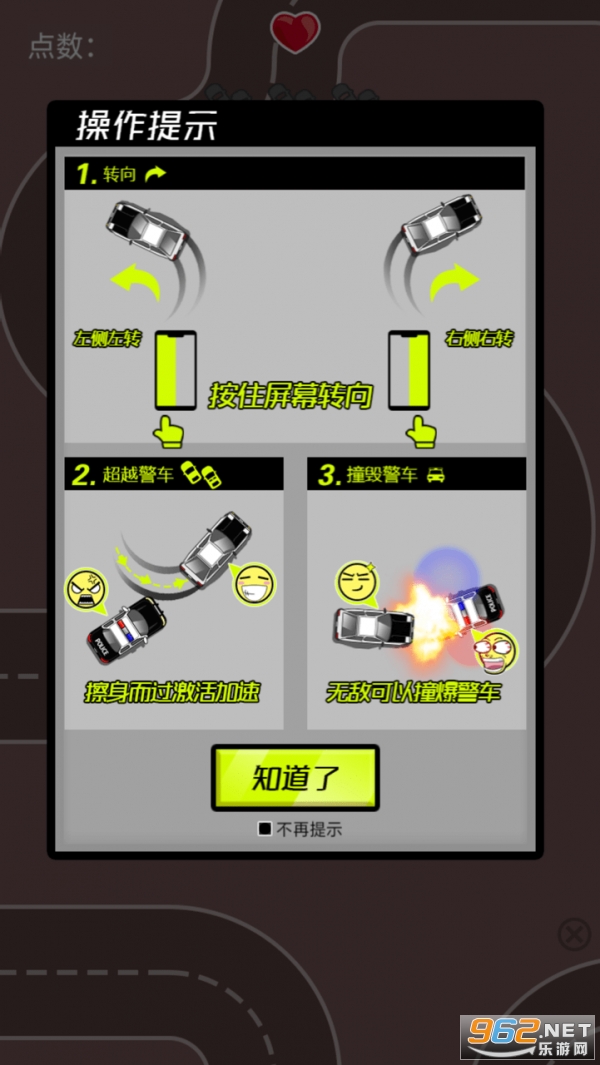 3、学会控制:通过左右滑动手指来控制赛车的移动,注意灵活应对路上的障碍物。