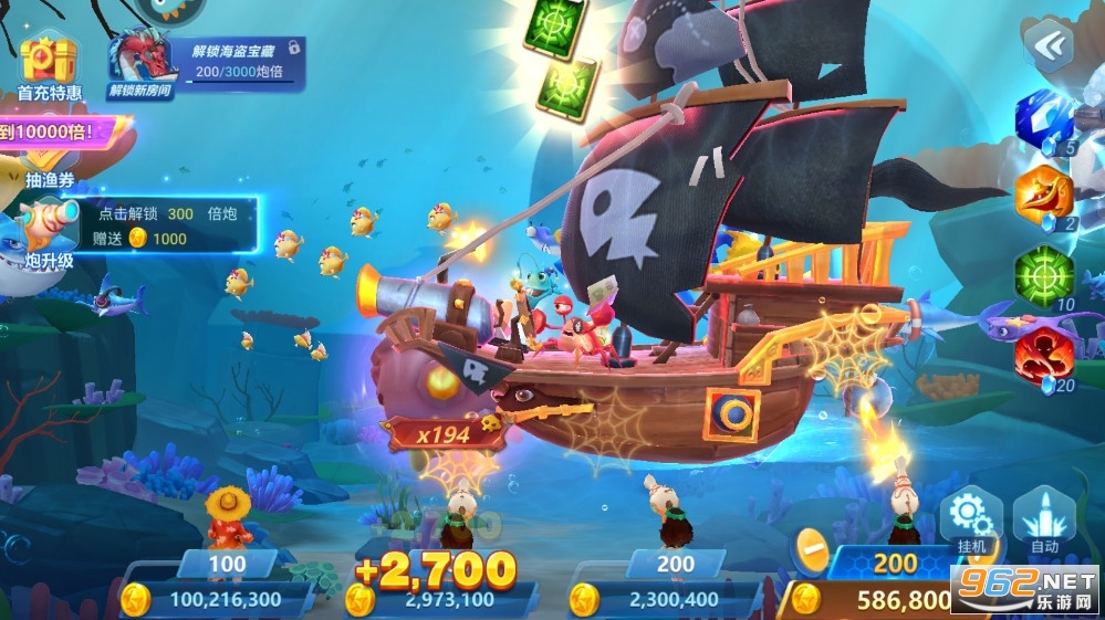 2、丰富鱼种,金龙、金蟾、金鲨更多Boss等你爆机。