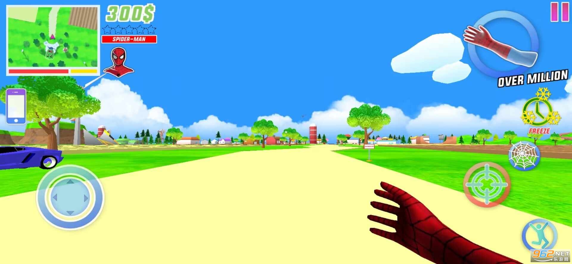 1、灵敏操控蜘蛛侠英雄角色,进入城市中,担负捍卫城市义务;