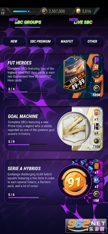 &8226; 完成SBC 组即可赢取独特卡牌和其他巨额奖励。