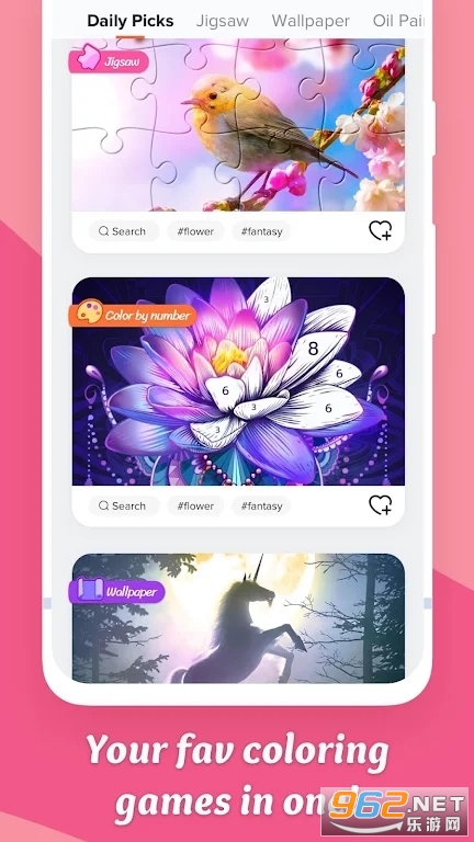 3. 丰富多彩的游戏内容:游戏内有数千个图案可供选择,每天还会更新新鲜图片的颜色,保证玩家在游戏中不会感到无聊,让玩家在游戏中体验到不同的画画乐趣。