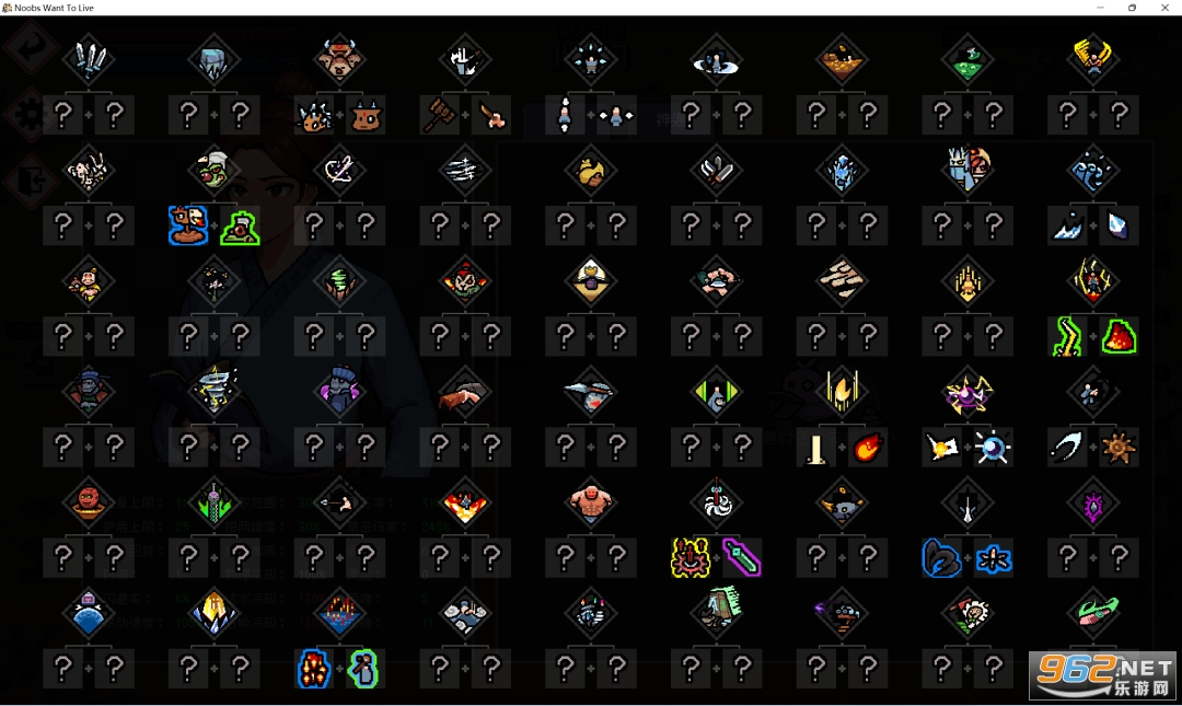 设置完后,我们就可以开始玩了,图鉴可以查看我们的神通组合,更容易发现更多神通,天赋可以增加我们的初始属性,让我们越打越强,最后一个成就可以查看怎么解锁新角色,新难度,或者获取更多天赋点。