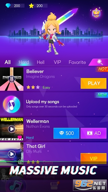 海量歌曲,不断更新,总有你喜欢的歌曲,3D 图形,酷炫刺激,还有音乐的魅力。