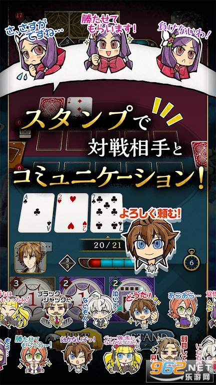 《21点武装游戏》(ブラックジャックギア)一款将集换式卡牌游戏和Blackjack(21点)玩法相结合的在线纸牌竞技游戏。玩家需要使用特殊的卡牌“齿轮”在对战中获得优势,将对手的生命值降至零以获胜。不论您是否熟悉集换式纸牌游戏或21点规则,这款游戏都能为您带来乐趣。