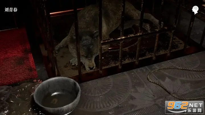 用斧子劈开笼子,通过笼子底下的通道,进入了一个奇怪的房间,一间和上面的房间完全一致的颠倒的房间。