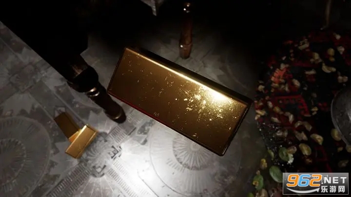 地上的金块拿起来背面印着几个字:钱就是鬼,虚妄。