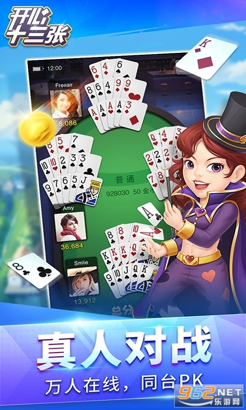 开心十三张安卓下载是明星代言的一款手机扑克游戏,游戏界面采用卡通画风,各种经典斗地主、扑克牌创新玩法应有尽有,体积小巧,运行流畅,活动奖励相当的丰富,免费下载玩玩吧!