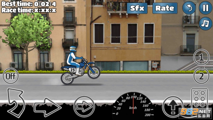 非常好玩的一款摩托车特技驾驶游戏,里面采用了2D横版的画风场景,音乐十分的刺激和热血,还有丰富的摩托车赛道让你去自由的选择驾驶,趣味满满,赛道选择丰富,感兴趣就来下载吧!
