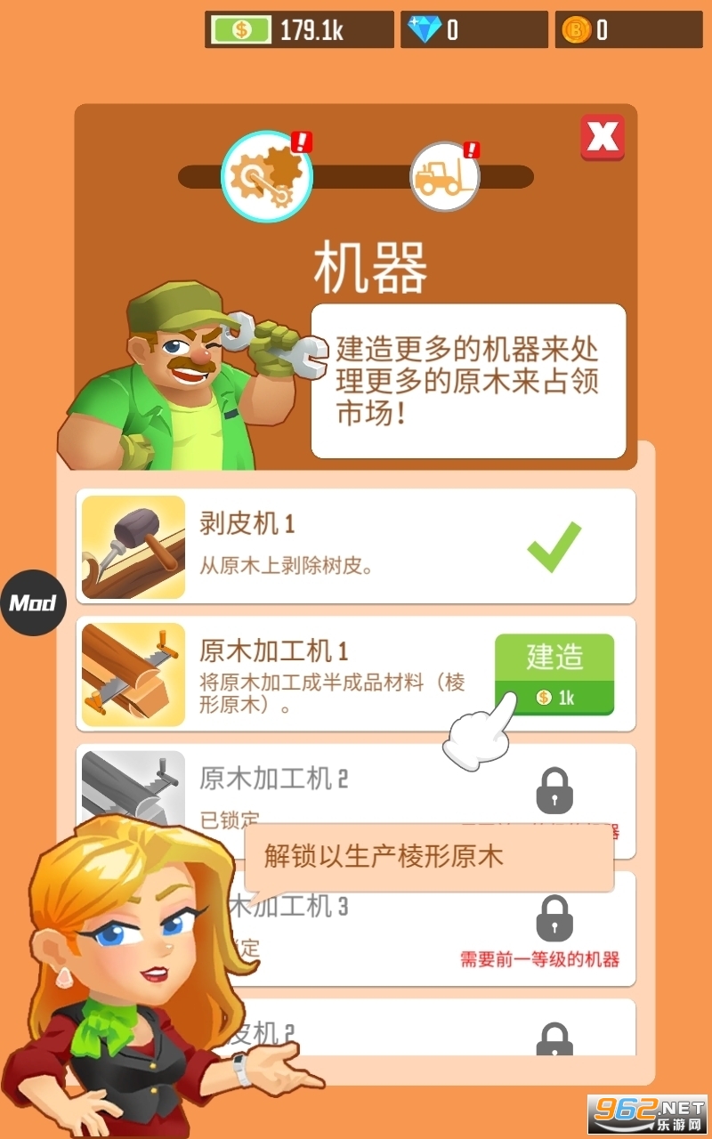购买和升级新机器以更快地处理日志并生产更多的木材产品。许多机器正等着您去发现。
