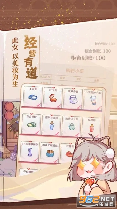经营美妆店铺的游戏,玩家代入女主的视角,穿越到竹马县接手胭脂铺;