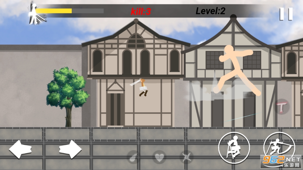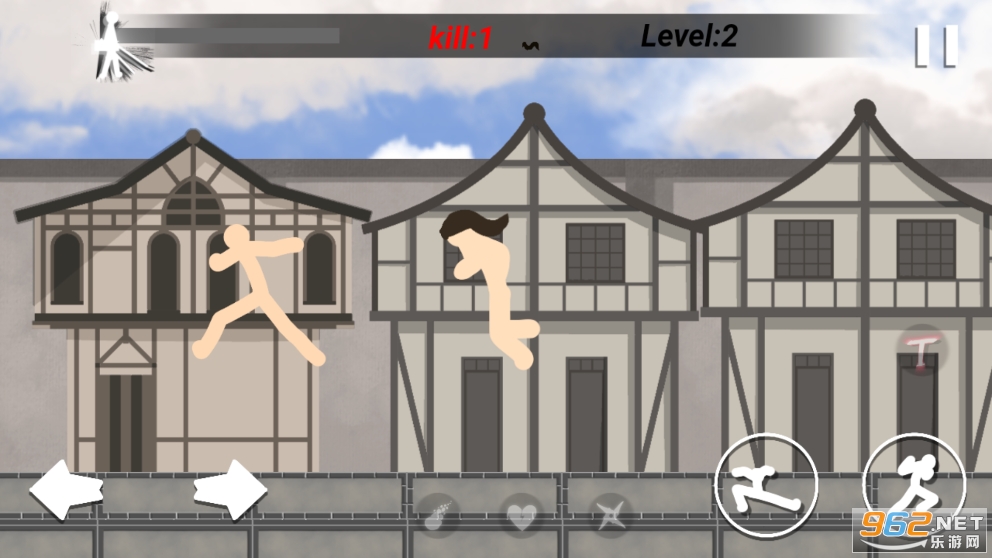 趣味的横版战斗游戏,加入了一些进击的巨人题材,玩家控制的火柴人将与巨大的火柴人对战,有着多种技能可以使用,也可以变身成为巨人去战斗,喜欢的朋友可以下载试试。