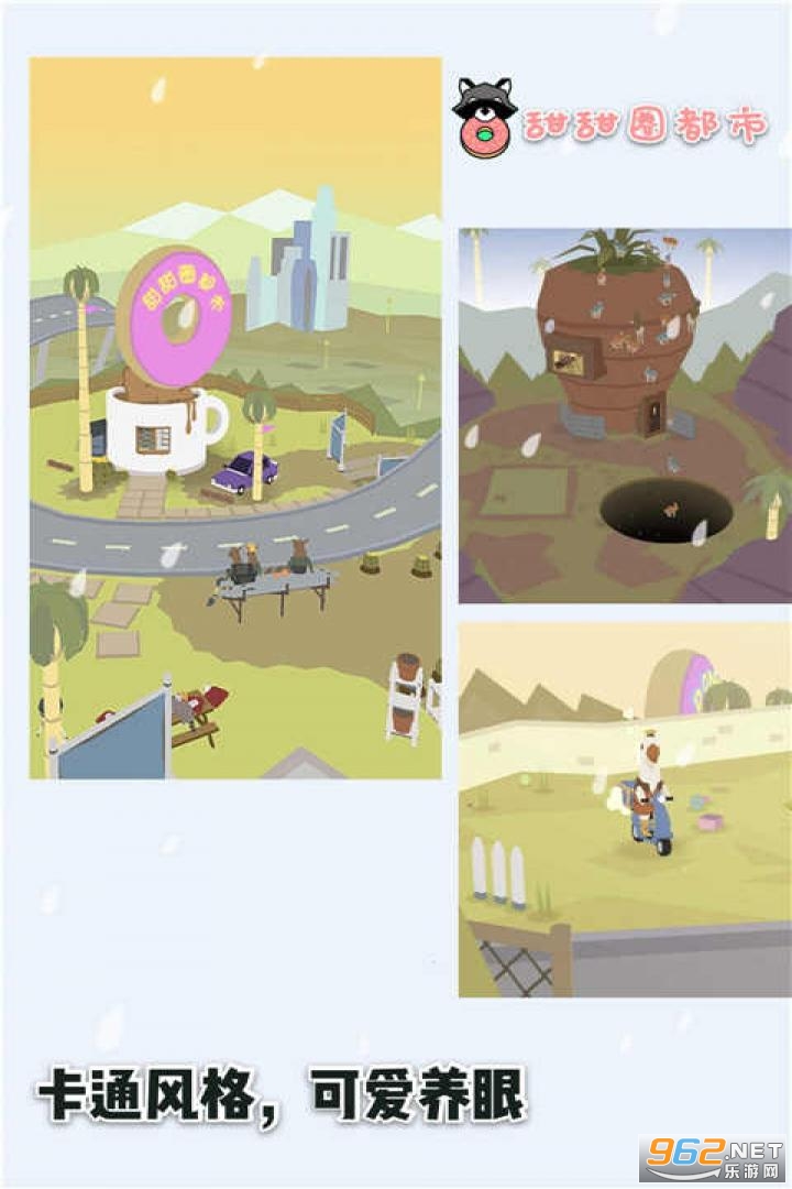《Donut County手机版》中文版名叫《甜甜圈都市》,非常有意思的一款叙事型的物理解谜冒险游戏,Q版清新可爱的画风,简单灵活的操作方式,轻松美妙的音乐,独特的解谜玩法,玩家扮演的是一个黑洞,在房子,森林,停车场,游乐场等场景里面吞噬万物,打造你的甜甜圈都市!