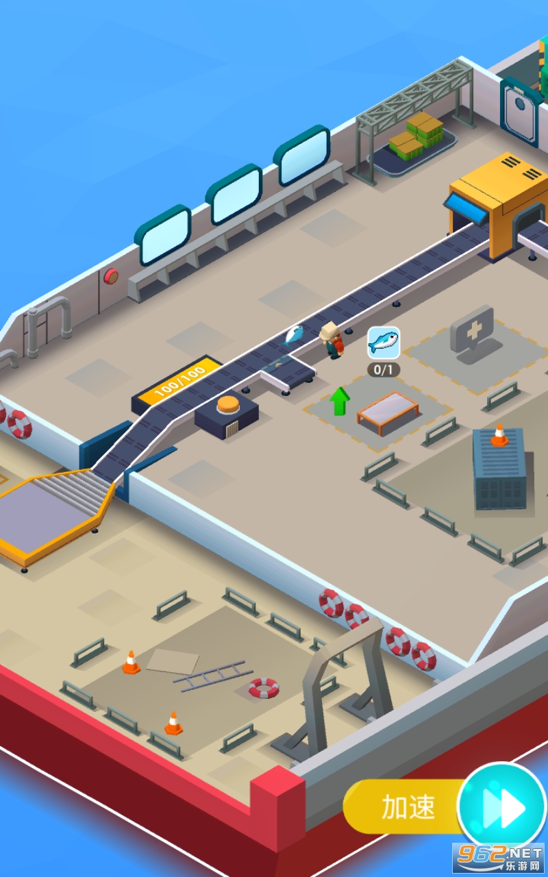 将你的渔船派往海上捕捉鱼类供你的工厂使用。一旦鱼被捕捉到,就有一台起重机帮助你把它们抬起并放在传送带上,将鱼类运送到包装机。