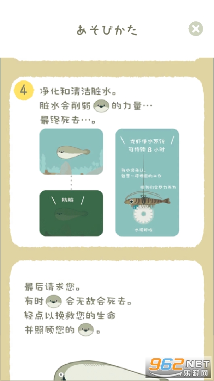 网红放置类养成小游戏,画风超级的小清新,玩法也十分的简单,玩家需要在这里通过过滤水,喂食扥方式,喂养照顾你的萨卡班甲鱼,看着它慢慢成长!