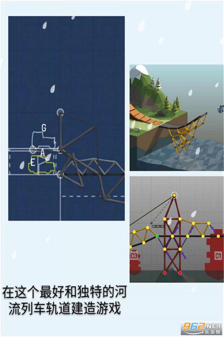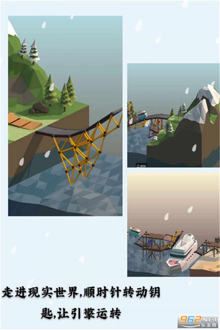 是一款模拟建造类游戏,游戏带来了很多全新的等级以及玩法机制,同时还有自定义的物理引擎,带给玩家更优秀的游戏体验。游戏中玩家可以建造各种有趣的桥梁来完成各种挑战,破解谜题。