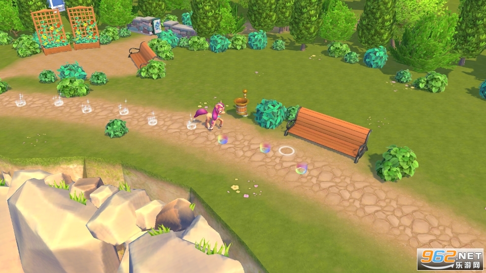 跟普通模拟经营游戏玩法差不多的是,你要通过赚取游戏货币迎接新来的小马、建设房屋、扩张土地等。