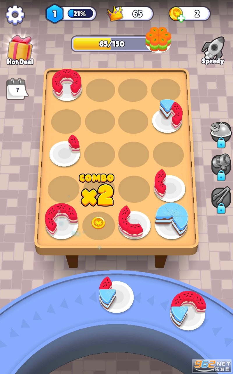 拼图类休闲游戏。蛋糕必须快速完成,这样同种蛋糕可以在第一时间恢复为完整的蛋糕