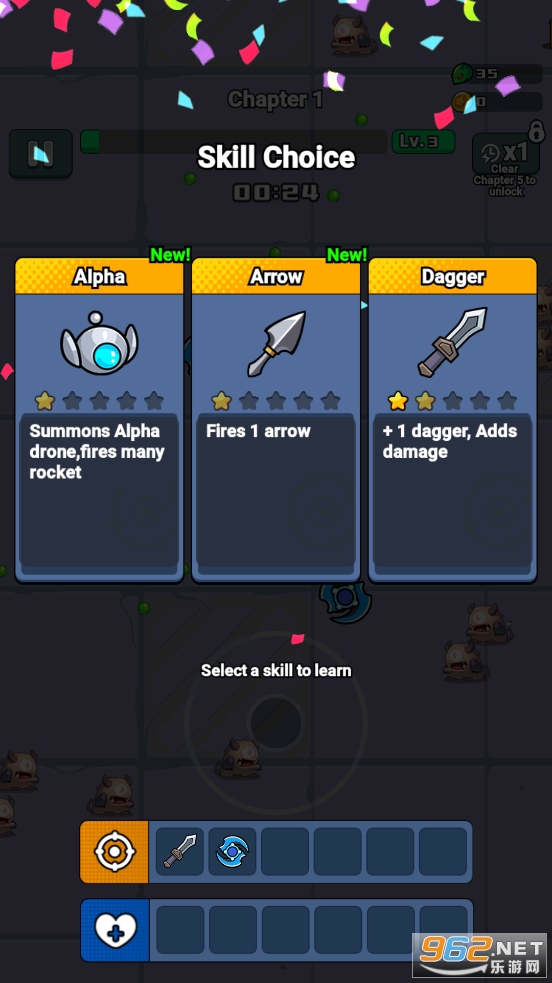 趣味的割草冒险游戏,可以通过学习天赋来提高角色的属性,可以通过升级来学习各种各样的技能,合理的搭配去消灭涌上来的各种各样的敌人,喜欢的朋友可以下载试试。