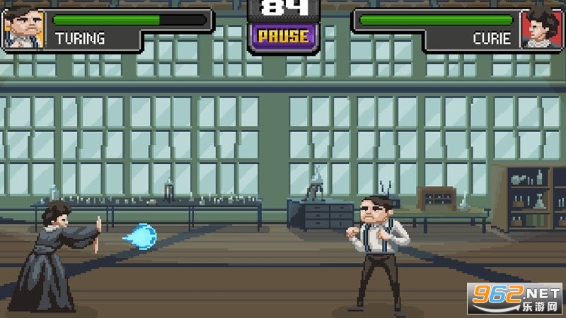 3.游戏采用了像素风的风格,但是并不影响整体的细节,每一位科学家的辨识度都非常之高,让我这个文科生看了也能一眼认出来,有趣的一点是随着战斗对象的不同,后面的背景也会换成和该科学家相关的画面。再加上节奏强烈的电音,非常带感,玩得我根本停不下来。
