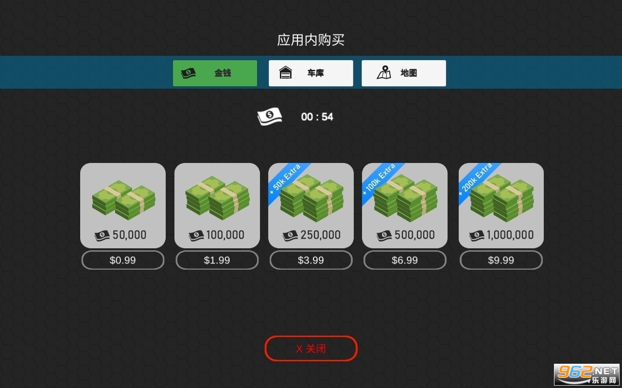 免广告获得奖励,商店中金钱产品点击购买 100100,车库点击购买即可拥有