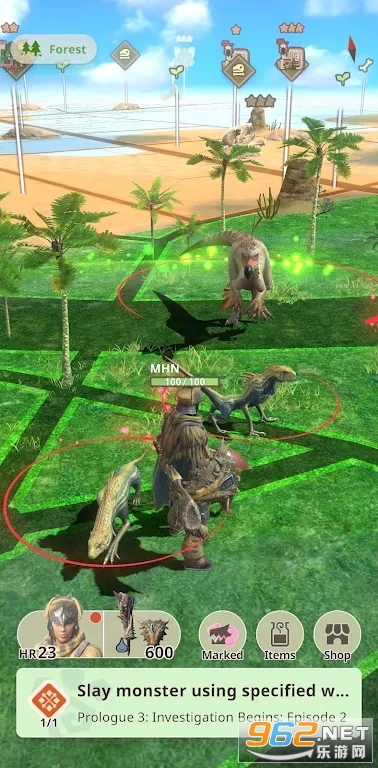 开始游戏:在 Monster Hunter Now 中,您需要走出门,身体移动以狩猎出现在现实世界中的怪物。 根据您周围的栖息地(森林,沙漠或沼泽)发现各种怪物,并独自参加激动人心的战斗,或与其他猎人一起组队对付这些大型怪物。