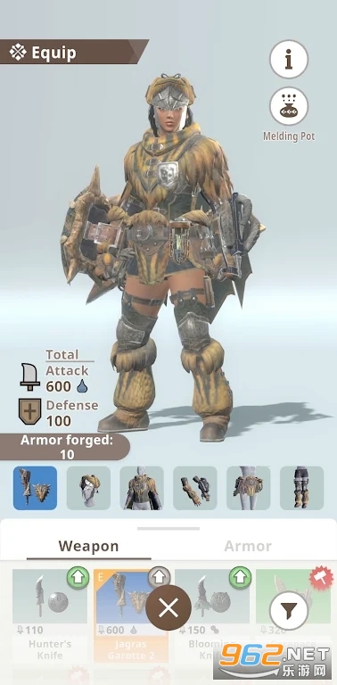 武器和盔甲:拥有从剑和盾到锤子和弓箭的各种武器类型,您需要收集材料,锻造和升级武器和盔甲以击败特定的怪物。当您击倒怪物时,您将收到可用于制造更强大武器和盔甲的材料,以便猎捕更危险的怪物。收集铁矿石和怪物骨头等资源,打造强大的盔甲,抵御更强大的怪物攻击。