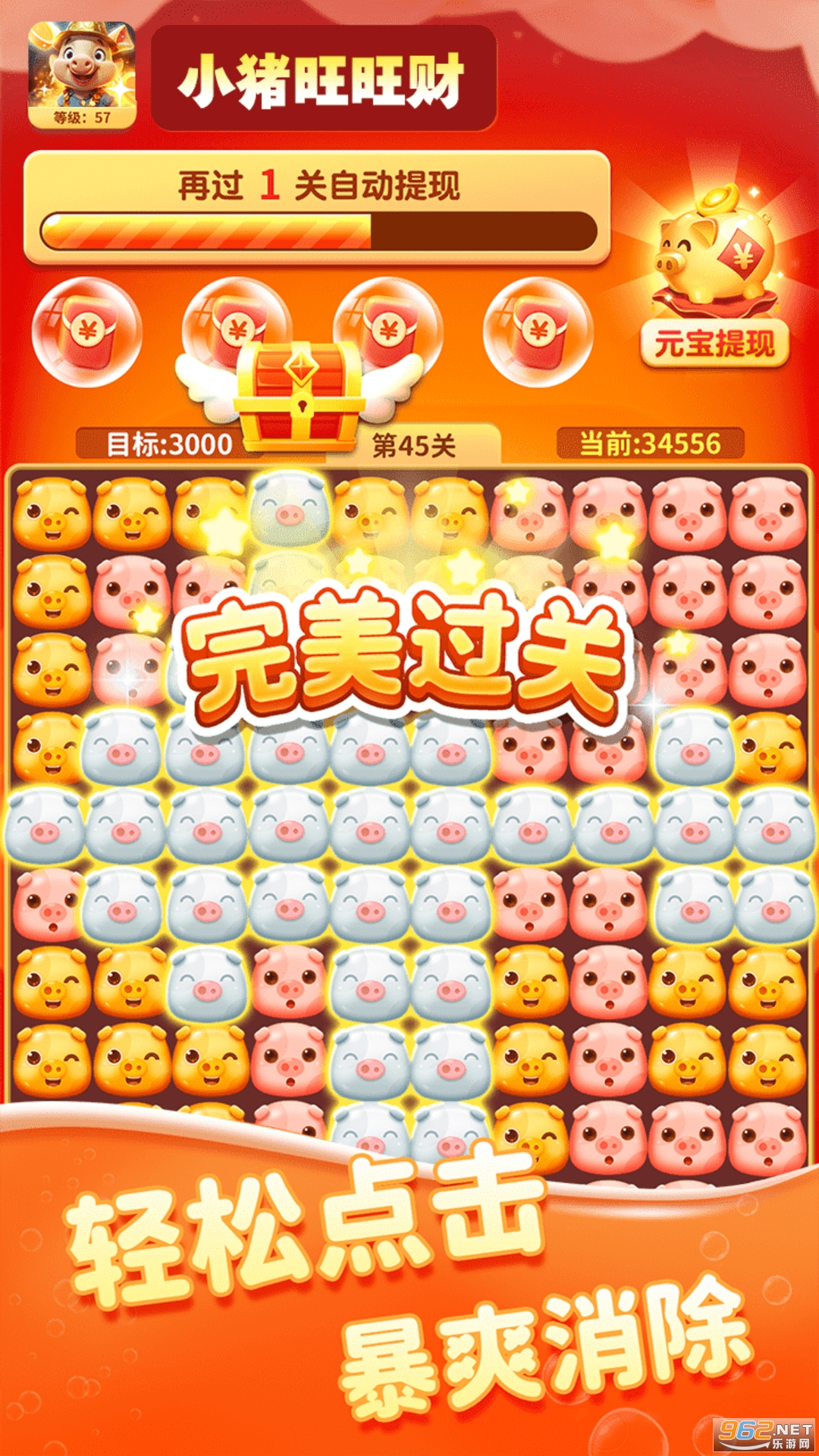 有趣的消除益智赚钱游戏,游戏中有着十分新颖的消除玩法,看起来蠢萌蠢萌的小猪将成为游戏的主角,玩家只需要将三个或三个以上相同颜色的小猪排在一起就可以消除了,成功通关还可以获得红包奖励