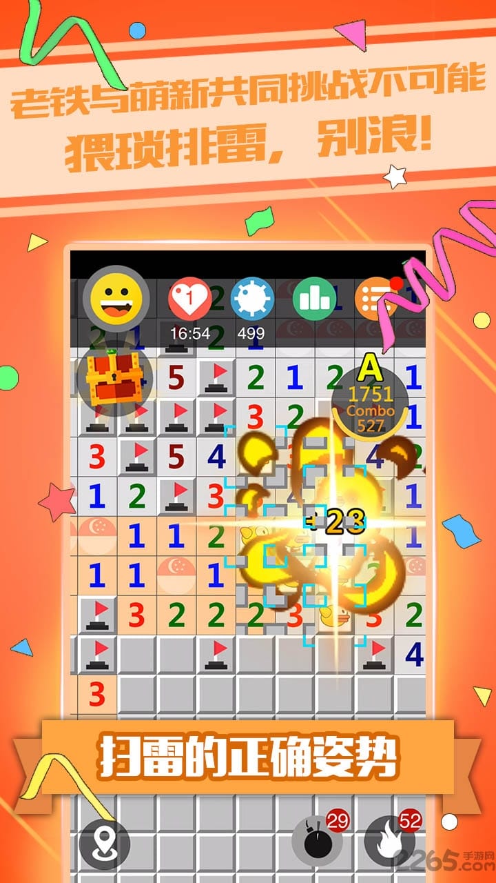《天天爱扫雷》是一款真正的千人同时在线.io类扫雷游戏,你可以在大地图中遇到各种各样风骚的扫雷玩家,大家一起协力扫雷。当地图上的千万颗雷都被玩家们排除,地图密码将被揭开,玩家将一同进入全新阶段,不断挑战世界最多扫雷任务的新记录!