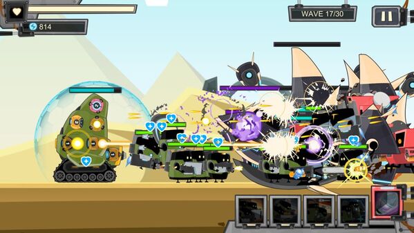 这是一个横向版的实时战略游戏。在游戏中,你可以逐渐强化变形坦克的战斗,并且不断地收集各种火炮和增强配件,进而组装建造一辆终极战车来对抗庞大的敌人,体验在游戏中一夫当关万夫莫开的战斗乐趣。