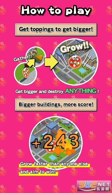 活生生的披萨们之间的误会引发了一场无规则的竞争战斗。玩家将控制自己的披萨进行碰撞,将汽车、建筑等一切障碍物粉碎,不断吞噬,使自己的披萨变得更大更强。游戏提供超过60种不同技能的披萨供玩家选择,速度、力量、可爱等特点都可以成为获胜的策略。通过简单的操作,只需一根手指,任何人都可以成为披萨之王!快来加入这场充满趣味和竞争的披萨大战吧!