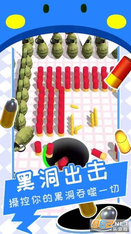 在黑洞清扫战场游戏中,你扮演着一个黑洞英雄攻击者,需要使用黑洞来吞噬战场上的所有武器和子弹堆。你将面对巨大的boss,并需要提升自己的力量来对抗它们。选择喜欢的黑洞皮肤,开启属于你的清扫战场之旅吧!