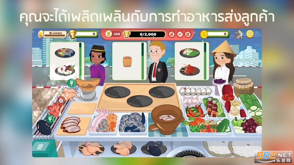 RimTHang游戏将带您领略泰国风情的街头经营美味之旅!在这款模拟游戏中,您可以搭建自己的泰国街头餐车,为时尚潮流的食客们提供最地道的泰国美食。游戏中有各种趣味料理、烹饪和装饰选项,您可以根据市场需求和个人喜好进行设置。迎接快节奏的时间管理挑战,点击烹饪、装饰、服务和管理大量客户。挑战各种关卡,收集特殊奖励和成就,让您的餐车越来越美丽繁忙。准备好迎接各种食客的需求,招募员工一起制作美食,经营一个成功的泰国街头餐车吧!