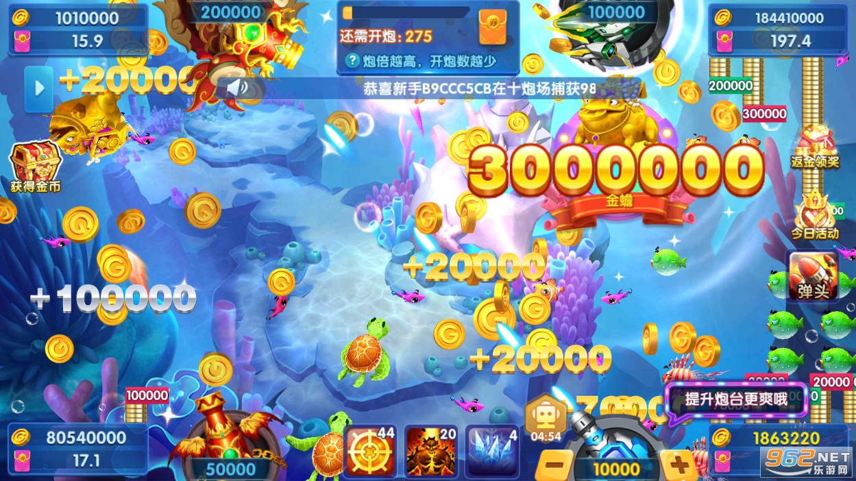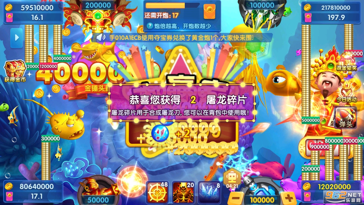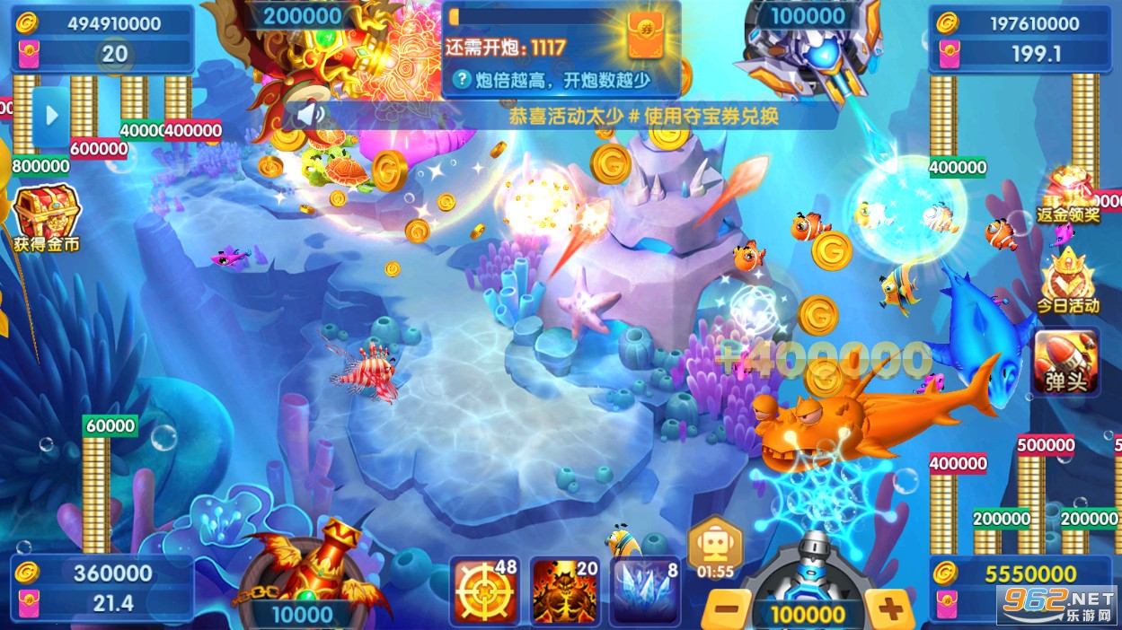 各种爆机金币送不停,奖励鱼、一网打尽, 金币,道具,在线奖励疯狂送不停!