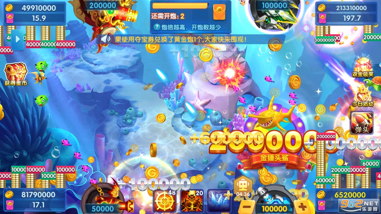 多种捕鱼竞技场,带你身临其境体验经典电玩城捕鱼的氛围,享受一夜暴富的刺激。