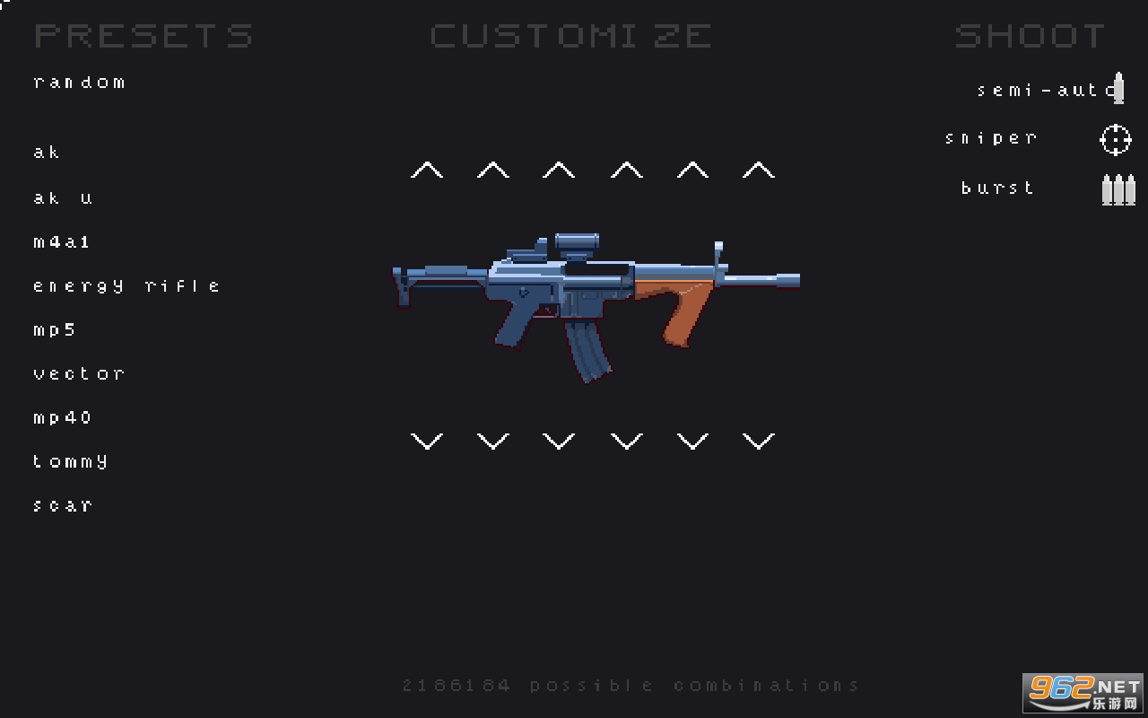 1、拥有丰富的枪械种类,采用像素风格设计,让玩家可以根据自己的喜好打造个性化的武器。