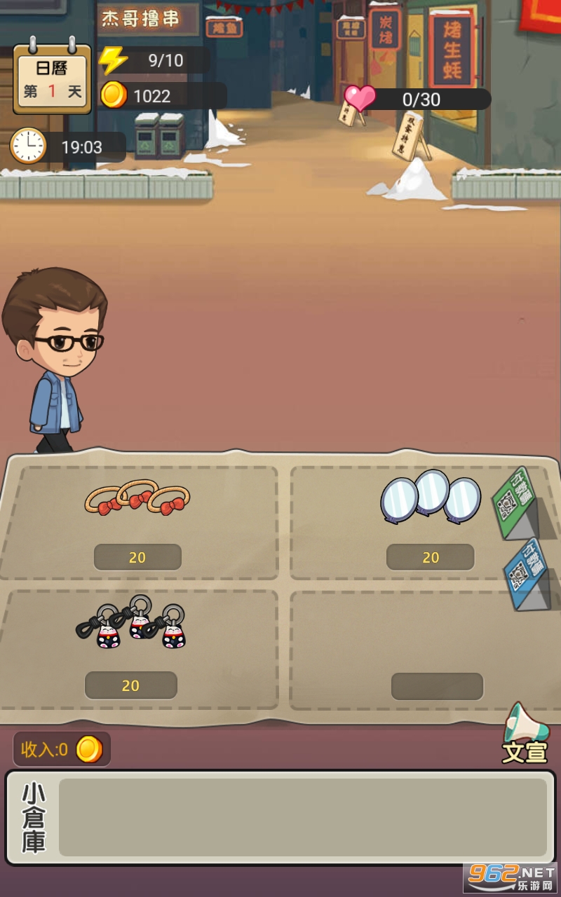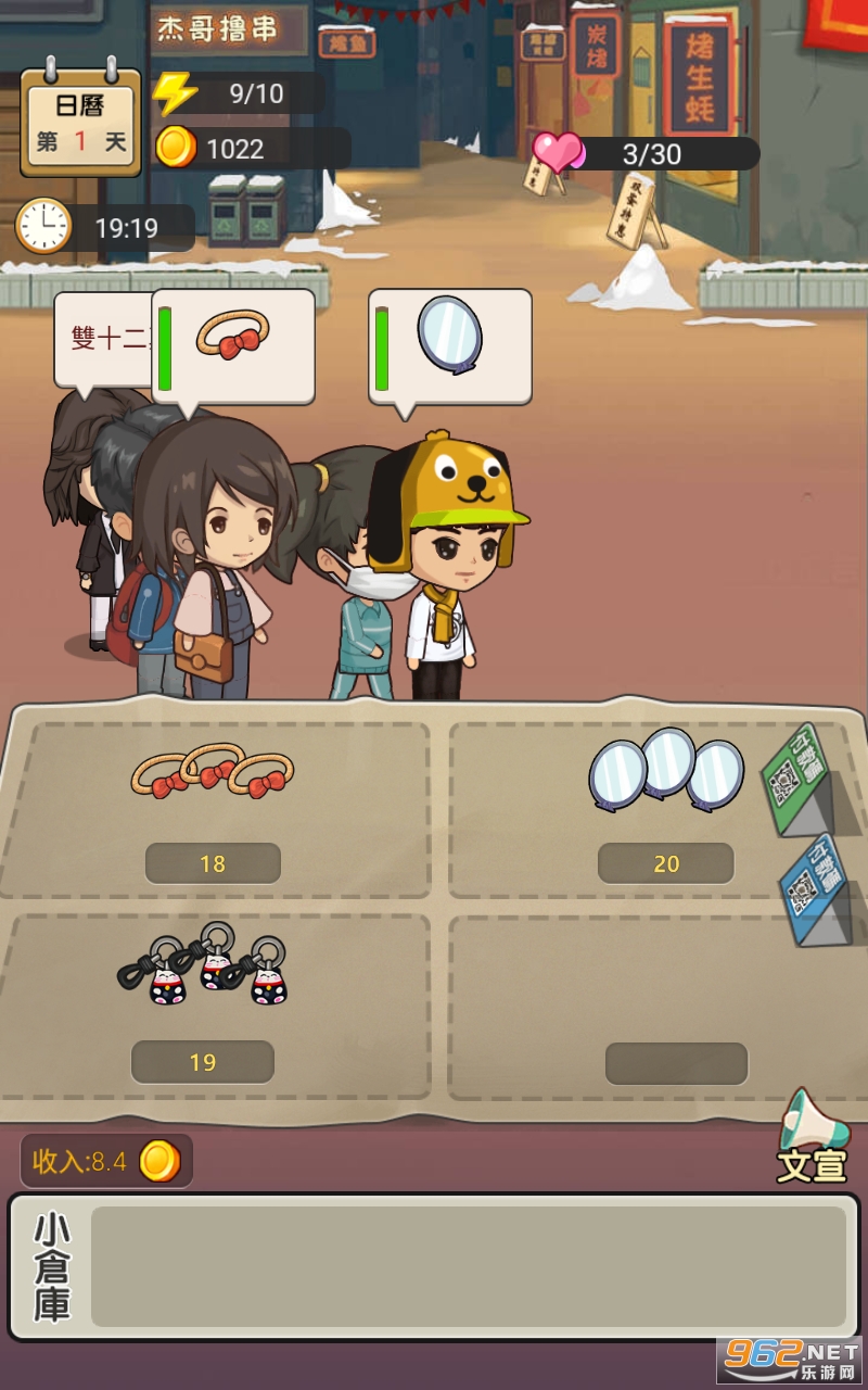 3.每个摊位都会有不同的开放时间和租金,玩家需要合理安排时间和资金。