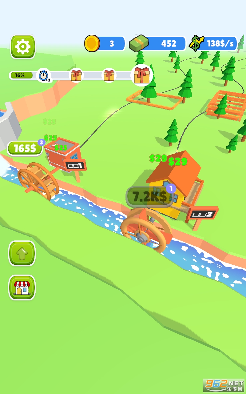 是一款独特的且富有挑战性的经营模拟游戏,以水力发电为核心元素,引领玩家进入一个充满趣味和探索的休闲世界。游戏设定在美丽的的小溪边,玩家需要利用自然环境中的水力驱动水轮,为店铺提供电力,同时提供各种美食和娱乐设施,吸引顾客前来消费。